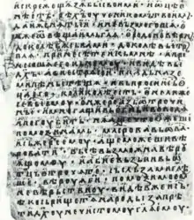 The Bojana Palimpsest or Bojana Gospel (Russian: Боянское Евангелие) is an 11th-century Old Church Slavonic manuscript, originally written in a Glagolitic manuscript.[1] In the 13th century, the Glagolitic text was removed, and the parchment was reused to write a Cyrillic gospel.[2]