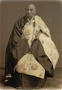 Bokusan Nishiari (Japanese: 西有穆山; rōmaji: Nishiari Bokusan), was a prominent Japanese Sōtō Zen Buddhist monk during the Meiji Era. He is considered one of the most influential Sōtō priests of the modern era due to his elevation of the status of the school's founder Eihei Dōgen, the many prominent positions he held during his lifetime, and his almost equally prolific disciples Sōtan Oka and Ian Kishizawa. Nishiari's positions included abbot of Sōtō's head temple Sōji-ji, professor at what would become Komazawa University, and chief priest, or kanchō, of the entire Sōtō school. His student Sōtan Oka was the first abbot of Antai-ji and a teacher to both Kōdō Sawaki and Hashimoto Ekō, each of whom are the source of Zen lineages in the United States. His student Ian Kishizawa taught Shunryū Suzuki, the founder of the San Francisco Zen Center. Though critical of Nishiari later in his life, the founder of the Sanbō Kyōdan sect Hakuun Yasutani also studied extensively with him and Kishizawa.[1] The Buddhist studies scholar William Bodiford writes of Nishiari: