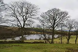 The Bollinhurst Reservoir was constructed in Lyme Park in 1872 for the Stockport District Waterworks Company.[1] At the time of the First World War, it had a capacity of 84.46 million gallons.[2]
