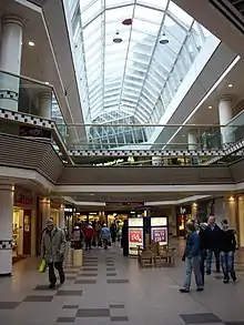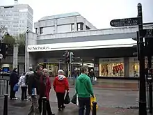The northern entrance of the centre is located across the street from a former John Lewis & Partners department store, and the store is connected to the centre via a bridge on the first floor. The John Lewis department store opened on 4 October 1989 and closed in 2020.[1][2][3] The bottom floor of the John Lewis department store was subsequently used as a vaccination centre.[4]