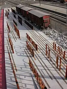 No trace now remains of the former Borgo San Dalmazzo concentration camp, but two epitaphs were erected to mark the events that took place in Borgo San Dalmazzo. In 2006 a memorial was erected at the Borgo San Dalmazzo railway station to honor the victims of the deportations. The memorial contains the name, age and country of origin of each of the victims as well as those of the few survivors. Freight cars similar to those used in the deportation are preserved nearby.[1][2][3]