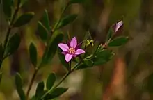 Boronia parviflora, commonly known as the swamp boronia, small boronia, tiny boronia, or small-flowered boronia,[2] is a plant in the citrus family Rutaceae and is endemic south-eastern Australia. It is a weak, low shrub with elliptic to egg-shaped leaves with finely toothed edges and up to three pink, white or green four-petalled flowers arranged at or near the ends of the stems.