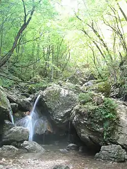 The Borovniščica (pronounced [bɔɾɔu̯ˈniːʃtʃitsa]) is a stream that originates in the hills west of Gorenje Otave[1] and flows to the north through Hell Gorge (Slovene: Soteska Pekel), creating a series of waterfalls,[1][2] and then through the village of Borovnica.[3] It then flows across the Ljubljana Marsh, where it joins the Ljubljanica River as a right tributary. The upper course of the creek separates the Rakitna Plateau (Slovene: Rakitniška planota, to the east) from the Logatec Plateau (Slovene: Logaška planota, to the west).[4]