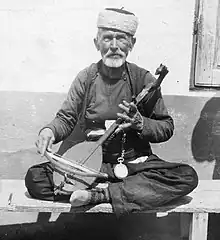 Bosniak epic poetry, just like the epic poetry of other Southern Slavs, was accompanied by the Gusle (Lahuta in Albanian). Kosta Hörmann mentions in his collections of epics from the territory of Bosnia and Herzegovina during Austro-Hungarian times that he "recognized joy when his Muslim hosts got lost in Gusle made from maple, after which a sonorous howl came from the singer's ringing throat. Songs about heroism and good horses".[22] Milman Parry and Albert Lord also recorded many epic songs that were accompanied by the Gusle in their journeys through Bosnia, Herzegovina, and Montenegro.[23]