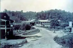 Although the village stagnated with the end of canal packet, or passenger boat era, the arrival of the Valley Railway in 1880 and the Cleveland—Akron Bag Company in 1900 began a new period of growth. Connecting the industries of Cleveland with the coal fields in the south, the Valley Railway provided raw resources and access to markets for industrial operations. The Cleveland—Akron Bag Company brought with it many Polish immigrant workers and new houses—built and sold by the company. Several patterned concrete block houses and a school remain from this era, along with a company store building. A somewhat later 20th-century building, the M. D. Garage has been restored, including period gas pumps and signage, and now houses art exhibits. The compact nature of the village creates streetscapes that juxtapose the buildings from each era.[2]