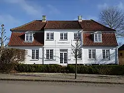 Following the completion of Fredensborg Palace in 1722, Fredensborg developed into a popular summer destination for civil servants and artists. The house now known as Bournonville House was built for royal county administrator (amtsforvalter) Jacob Lowson in 1761.[1] It was later sold to a royal messenger named Berner and it was also for a while operated as a guesthouse under the name Sommerlyst. The Royal Danish Ballet and other performing artists would often visit the town in the summer time to entertain the royal family and their guests. The house at Slotsgade 9 received its current name when it was acquired by choreographer August Bournonville. His father Antoine Bournonville had spent his last few years (184143) in a residence at Fredensborg Palace and is buried in the local Asminderød Cemetery. Bournonville used the house as his summer residence until 1879. He was one of the driving forces behind the foundation of the town's first daycare Dronning Louises Asyl for Smaa Børn and made frequent contributions to the poorhouse.[2]