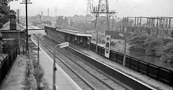 Bournville railway station in 1962, pre-electrification, looking northeast from Mary Vale Road bridge