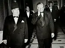 Lebanese President Bechara El Khoury visits Boutros El Khoury at his residence in Karm Sadde, ahead of the 1943 parliamentary election.