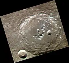 Boznańska crater (right of center) lies within a larger, older, unnamed crater