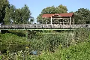 The Brücke von Andau (Hungarian: Mosontarcsai híd or Andaui híd) is a small bridge over the Einserkanal / Hanság-főcsatorna, a small artificial river which forms part of the border between Austria and Hungary. It is located near to the village of Andau (Burgenland, Austria).