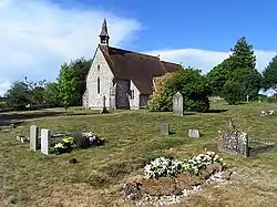 The parish contains a total of seven Grade II listed buildings and one Grade II* listed building—the Church of All Saints.[17] Some of the oldest parts of the church date from the 13th century, although the structure was virtually rebuilt afresh in 1877. The church roof consists of red tiles with a small broach spire and a wooden turret. The walls are made of flint with stone dressed buttresses and the windows date from the Restoration period.[18] Other listed buildings in the vicinity include Southwood Farmhouse, Manor Farmhouse and the Upper Farmhouse. Southwood Farmhouse is two storeys high and dates from the 18th century. Its walls are made of red brick with cambered floor openings and its roof is steeply tiled.[19] Manor Farmhouse lies to the south of the village and consists of a near-identical design with Southwood Farmhouse, although it was probably constructed in the early 19th century.[20] The Upper Farmhouse lies in the centre of the village and is a house of mixed periods. The building itself dates from the 17th century, though expansions were made in the 18th and 19th centuries. The house has interior framing and a Victorian lighting system. Its taller expansions were made in the 18th century, and in between the expansions lies a 19th-century gable with a brick porch at its north side.[21]