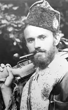 In January 1942 Bogunović was awarded by Slobodan Jovanović, president of the Yugoslav Government in Exile with Karađorđe's Star.[6] In 1942 the Chetnik Regiment "Gavrilo Princip" became part of the Dinara Chetnik Division.[7] The regiment had two battalions with total number of 800 men armed with 4 heavy machine guns, 8 light machine guns and 70 bullets for gun of each soldier.[8] Also in 1942 Mane Rokvić and Bogunović were promoted to the rank of voivode by the commander of Dinara Chetnik Division, Ilija Trifunović Birčanin.[9] The leaders of the Dinara Division agreed on basic principles of their further struggle, presented in a document composed between 8 and 12 March 1942 and titled "Elaborat of Dinara Division" (Serbian: Елаборат Динарске дивизије).[10] The main objective of their struggle stipulated in elaborate signed by Momčilo Đujić, Pavle Popović, Pavle Omčikus, Branko Bogunović and Mane Rokvić, was establishing of the Serb nation-state.[11] At the beginning of 1943 the regiment under his command became the Chetnik Brigade "Gavrilo Princip".[12]