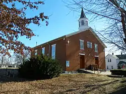 Some of the earliest Americans to put down roots in Perry County were English and Scots-Irish Presbyterian settlers from Rowan, Iredell, Cabarrus, and Mecklenburg counties in North Carolina who settled Brazeau in 1817.[5] There, they opened land in the Brazeau Creek drainage basin. In 1804, Brazeau was estimated to have had 88 inhabitants. The Evangelical Presbyterian Church of Brazeau was established on September 2, 1819, and a log church was erected. After a fire destroyed the log church in 1832, a new frame church was built in 1833 to replace the lost structure.[6][7] A brick church, which is still in use, was built in 1854. An academy was established in the same year until public schools became prevalent in the 1880s.[8] The people of Brazeau are said to have helped the Saxon-Lutheran immigrants from Germany during their first hard winter of 1839, saving them from possible starvation.