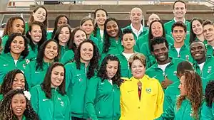 Brazilian President Dilma Rousseff with part of the Olympic delegation.