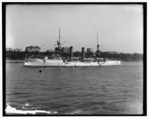 Almirante Barroso was the first Brazilian vessel to have radiotelegraphy, thus promoting the first experiences with this system in the country. In 1900, it was part of the White Division together with the battleship Riachuelo and the cruiser Tamoyo, responsible for taking the then president Campos Sales to Argentina in retribution for the same gesture of Argentine president Julio Argentino Roca. Among some of its commissions, a trip to Chile in 1903 stands out, in return for the visit of ships from that nation to Brazil. In 1904, it was the flagship of the Northern Naval Division, in Manaus, during a period of tension between Brazil and Peru over border issues. During the Aquidabã disaster in 1906, it helped to rescue the shipwrecked, wounded and dead. In 1908, it brought back the remains of admirals Barroso and Saldanha da Gama from Uruguay.[4] At the time of the Revolt of the Lash, in 1910, Almirante Barroso was among the vessels that faced the mutineers, but its firepower and that of the other loyalist ships was negligible compared to just one of the rebels' dreadnoughts.[5][6] It was considered by the navy to be an outstanding ship, "for its impeccable presentation and for the rigor and discipline, order and efficiency maintained on board". The vessel was in active service until 28 July 1931.[4]