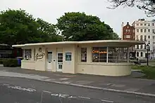 Distinctive timber shelters were built at many stops in the early years of the network. Some of these are still standing today[3] at Ditchling Road (Florence Place), Queen's Park Road (Pepperpot), and Dyke Road (reservoir). Another found reuse as the Aquarium Station of the Volk's Electric Railway. One is preserved at the Stanmer Rural Museum, and two at the Chalkpits Museum at Amberley.