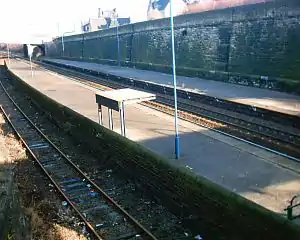 - ↑ Butt, R. V. J. (October 1995). The Directory of Railway Stations: details every public and private passenger station, halt, platform and stopping place, past and present (1st ed.). Sparkford: Patrick Stephens Ltd. p. 44. ISBN 978-1-85260-508-7. OCLC 60251199. OL 11956311M.