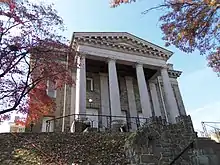 Emory M.E. Church was built in 1832 when A.G. Pierce donated a half-acre of land in to build a church and a school. The original building stood two stories high: a first floor of logs for the school; and a second story of frame construction for worship, with a separate entrance from the outside. Black worshippers sat in a gallery. The church was named for John Emory of Queen Anne's County, Maryland, who had just been ordained bishop. Bishop Emory paid the $200 salary of the preacher's salary. In 1856, the 72-person congregation replaced the building with a red-brick structure that was torn down in 1861 for Union Army fortifications. A stone church was built in 1870.[1]:101 The present-day building, at 6100 Georgia Avenue NW, was erected in 1921. The churchyard was originally used as a cemetery, customary use of such land in those days.[1]:102 Some of the deceased were later moved to Rock Creek Cemetery.[1]:101
