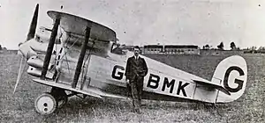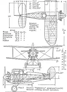The Badminton was a single-seat single-engine equal-span biplane, it was made from wood and metal with fabric covering.[1] It had a conventional tailskid landing gear and the nose-mounted engine was a 510 hp (380 kW) Bristol Jupiter VI.[1] Only one aircraft was built, registered G-EBMK, and it first flew at Filton Aerodrome on 5 May 1926.[1] It was entered into the 1926 King's Cup Race but it forced-landed with a fuel feed problem.[1] In 1927, the aircraft was rebuilt as the Type 99A with new wide-span tapered wings, a raised centre section and wide-chord interplane struts.[2] It was powered by an uncowled (525 hp) (392 kW) Bristol Jupiter VI engine.[2] It gained a certificate of airworthiness on 26 July 1927, but had a fatal crash at Filton two days later (28 July) after an engine failure on takeoff.[2]