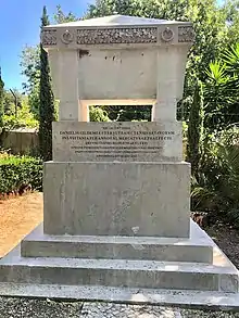 • Miklós Horthy, also known as Nicholas, had been the Regent of Hungary between 1920 and 1944. During World War II Hungary was effectively on the side of the Nazis and he was taken to Nuremberg for the Nuremberg trials of war criminals. He was never charged and came to believe he had been arrested by the Allies to protect him from the Soviet Union. He gave evidence at those trials and eventually settled in Estoril, Portugal, where he died in 1957. He was buried in the Cemetery but his body was relocated to the family crypt in Kenderes, Hungary in 1993.[2][17]