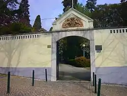 At the time it was established, the Cemetery was well outside the built-up area of the city, being surrounded by farms and vineyards. A wall was built around it, with an entrance to the west. Trees, mainly cypress, were planted, as the Inquisition wanted to "hide the graves of the heretics from the eyes of the faithful", and the plot became known as the "Cemetery of the Cypresses". The path from the entrance to St George's Church to the northwest of the plot was also bordered by cypresses. Many were blown down by a cyclone in 1941 but some of the original trees remain. Although now surrounded by roads and buildings, the Cemetery remains well wooded, but insufficiently wooded for residents of surrounding apartments who reportedly complained about the view in 2022.[5] The original British lease document was lost in the 1755 Lisbon earthquake but the first Dutch lease survives. The Cemetery, itself, was largely undamaged by the earthquake, although there is evidence of the ground levels being raised in places. According to available records, 68 British people were killed by the quake, although there is no reference to the event in Church records or on any tombstones.[1][4][6]