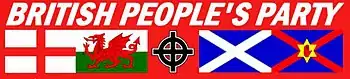 The British People's Party (BPP) was a neo-Nazi[1] political party in the United Kingdom, launched in 2005 by Kevin Watmough, Eddy Morrison, John G. Wood and Sid Williamson, former members of Combat 18, British National Party (BNP), National Front (NF) and the White Nationalist Party, as a splinter group from the Nationalist Alliance. Its founding member Eddy Morrison left the BPP and joined the NF in 2009. The party dissolved in 2013.