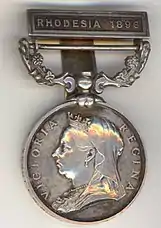 The British South Africa Company Medal (1890–97). In 1896, Queen Victoria sanctioned the issue by the British South Africa Company of a medal to troops who had been engaged in the First Matabele War. In 1897, the award was extended to those engaged in the two campaigns of the Second Matabele War, namely Rhodesia (1896) and Mashonaland (1897). The three medals are the same except for name of the campaign for which the medal was issued, inscribed on the reverse.[1]