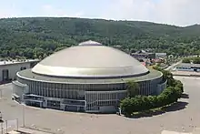 Brno Exhibition Center (Czech: Brněnské výstaviště) is a convention centre based in Brno, Czech Republic. It was established in 1928.[1] The centre occupies a site on 667,000 square metres (7,180,000 sq ft) and provides a total net exhibition area of 125,496 square metres (1,350,830 sq ft)[2] including open-air space and exhibition halls with an exhibition area of 61,479 square metres (661,750 sq ft).[3] The centre has 15 exhibition halls with a visitor capacity of 25,000–30,000 (maximum 60,000) a day. The number of visitors per year grew to 780,000 in 2017.[4]