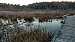 Broadmoor's 9 miles of trail pass through woodlands, marshland, ponds, and a glacial drumlin, and along the banks of the Charles River.[1] The sanctuary's wetlands feature wood ducks, painted turtles, great blue herons, and river otters.[8]