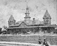 The Victorian-style Brockton station before it was replaced in the 1890s