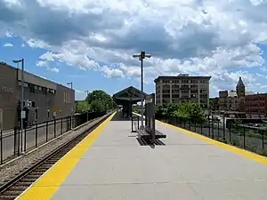 Brockton station is an MBTA Commuter Rail station in Brockton, Massachusetts. It serves the MBTA Middleborough/Lakeville Line and is a stop on the seasonal CapeFLYER service. The station has a single accessible full-length high-level platform that serves the line's two tracks. It is located adjacent to the BAT Centre, the primary hub for Brockton Area Transit Authority local bus service.