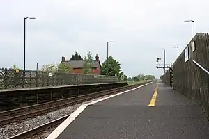 Broomfleet railway station serves the village of Broomfleet in the East Riding of Yorkshire, England. The station is on the Selby Line 14+12 miles (23.3 km) west of Hull. The station, and all trains serving it, are operated by Northern. Formerly located on a quadrupled section of line with platforms on the outer ('slow') lines only, the station was rebuilt when the section from Gilberdyke was reduced to double track around 1987.[1]