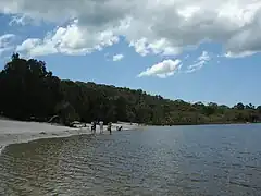 The lake is also of cultural significance to the Aboriginal population of North Stradbroke Island, the Quandamooka people, as they possess a spiritual and physical relationship with the ecosystem.[1] The indigenous population care for and protect the landscape, sharing traditional environmental management knowledge.[7][8]