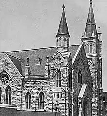 Construction was funded by a gift of $150,000 from his widow, Isabella McLanahan Brown, an amount equivalent to more than $4 million in 2009.[6][7] George Brown was described by a Baltimore historian as a successful businessman and civic leader who "regarded religion as preeminent above all other things and loved his church with all the ardor of his noble nature".[8] John Sparhawk Jones was the church's first pastor, serving from 1870 to 1884. Several of his collected sermons were later published in such books as Seeing Darkly, The Invisible Things, and Saved by Hope.