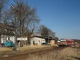 The tracks on the Bad Bodenteich–Wieren section were relaid in July 2011 on a ten-kilometre section from Vorhop towards Neudorf-Platendorf via Wahrenholz in the autumn of 2012. At the same time, the freight tracks in Wahrenholz station were dismantled (this part of the station was formerly called the Ölbf., "oil station",[2] as it was used for the loading of oil from the town’s two oil wells). The renewal of the tracks between Vorhop and Stöcken followed in 2013, with the simultaneous upgrading of all sets of points on the former freight tracks of Wittingen station. In addition, the points for the crossing loop in Bad Bodenteich and the entire length of track 2 including the sets of points in Gifhorn Stadt were renewed. In 2014, the track was renewed between Stöcken and Bad Bodenteich, where it connects with the subsequently constructed island platform, which enables the crossings of the few trains that have run hourly since December 2014. Platform 1, next to the station building, which had been dismantled at the time of the "hedgerow semi-fast trains,"[3] was rebuilt. The platforms were adapted in whole or in part to the entry height of the new railcars in the stations of Gifhorn Stadt, Neudorf-Platendorf, Wahrenholz and Knesebeck.