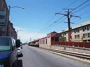 Bryn Mawr (better known as 71st and Jeffery) is a station on the Hyde Park/South Chicago branch of the Metra Electric Line. It is located at 71st Street and Jeffery Boulevard, which is 9.66 miles (15.55 km) away from the northern terminus at Randolph Street Station.[3] In Metra's fare-based system, Bryn Mawr Station is in zone B. As of 2018, Bryn Mawr is the 201st busiest of Metra's 236 non-downtown stations, with an average of 73 weekday boardings.[2] The station is named for the former name of the neighborhood at the time the line was built, when it was part of Hyde Park Township.[4]