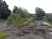 The Llanfyllin Branch of the Cambrian Railways opened on 17 July 1863.[1] The station was originally named Brongwyn; it was later renamed Bryngwyn.[2] It was 6+3⁄4 miles (10.9 km) from Llanymynech, and took its name from Bryngwyn Hall.[1] In 1866, there was one train on Tuesdays and one on Wednesdays.[1] Originally provided with a wooden shelter, this was later replaced by one of corrugated iron.[1] The platform was situated on an embankment on the west side of the Llanfechain road over bridge with step access to the road.