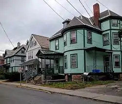 The historic district is bounded on the north by Pearl Street, the east by South Willard Street, and the south by College Street, but does not include any buildings on those major through streets. It is bounded on the west by Orchard Terrace and South Union Street, which are just east of South Winooski Avenue, one of the city's downtown thoroughfares. Most of the district's buildings are residential, one to three stories in height, and built of wood. Stylistically, the large majority are in a late Queen Anne Victorian style, although there are examples of Dutch Colonial, Colonial Revival, and Bungalow buildings. At first occupied by main middle-class residents working in the downtown area and the city's manufacturing plants, it is now mainly populated by college students attending nearby schools, principally the University of Vermont, whose campus is east of South Willard.[2]