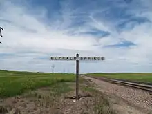 Sign for Buffalo Springs along the railroad