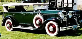 Buick's top platform was introduced in 1931 as the Series 90, using the GM "C-body" platform shared with the Cadillac Series 355. It featured a 344.8 cu in (5.7 L) Buick Straight-8 engine OHV engine, developing 104 bhp of power at 2,800 rpm.[1] A premium luxury car, it was intended to compete with the advanced Cadillac V8, the exclusive straight-8 Packard Standard Eight, and other top U.S. marques.