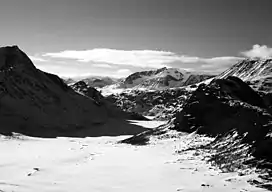 ![]() Picture take over the Leirungsdalen with Bukkehåmåren to the left | |
