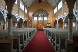 Buksnes Church (Norwegian: Buksnes kirke) is a parish church of the Church of Norway in Vestvågøy Municipality in Nordland county, Norway. It is located in the village of Gravdal on the island of Vestvågøya. It is the church for the Buksnes parish which is part of the Lofoten prosti (deanery) in the Diocese of Sør-Hålogaland. The red, wooden, Dragestil church was built in a long church style in 1905 using plans drawn up by the architect Karl Norum. The church seats about 600 people.[1][2]