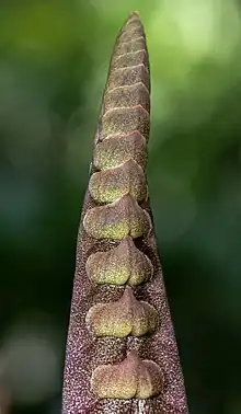 Bulbophyllum purpureorhachis is a species of orchid in the genus Bulbophyllum.