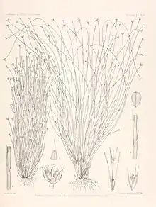Bulbostylis lichtensteiniana is a species of flowering plant in the sedge family, Cyperaceae, that is endemic to Saint Helena.[1][2] Unlike other species native to Saint Helena, such as Bulbostylis neglecta, Bulbostylis lichtensteiniana does not show obvious signs of decline due to the spread of invasive plants. However, the lack of decline is partially attributed to Bulbostylis lichtensteiniana being the only endemic plant to have expanded into new anthropogenic habitats.[3]