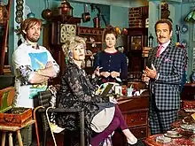 Promotional image released in anticipation of the series' broadcast, from left to right: Naz Osmanoglu (Toby), Maureen Lipman (Beverley Bull), Claudia Jessie (Faye), and Robert Lindsay (Rupert Bull)