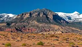 ![]() Northeast aspect, from Highway 95 (Snow-capped Mt. Ellen in back} | |