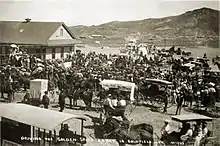 Driving the golden spike at Goldfield, Nevada, circa 1905.