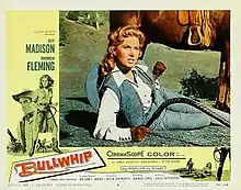 Bullwhip is a 1958 American CinemaScope Western film directed by Harmon Jones and starring Guy Madison and Rhonda Fleming. The film is about a cowboy in Abilene, Kansas who agrees to a marriage to avoid being hanged. The film was shot at Kenny Ranch in Murphys, California. It was the final feature film screenplay of Adele Buffington.[1]