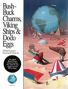 Bushbuck Charms, Viking Ships & Dodo Eggs, also known as Bush Buck: Global Treasure Hunter, is an educational computer game released in 1991. Designed by the Australian company Reckon, the game was published by "PC Globe", a small US-based company that specialized in "edutainment" software in the late 1980s and early 90s. In the tradition of Brøderbund's Carmen Sandiego games, "Bushbuck Charms, Viking Ships and Dodo Eggs" taught geography through a storyline that involved a global scavenger hunt for unusual items.[1] Each game, the player had to find fifteen items which the game chose from a selection of hundreds of possible items.[2] A few of the possible items were a hemlock leaf, a lava-lava, and an alpaca poncho.[2] The game ran on the Amiga and MS-DOS platforms.