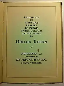 The gallery De Hauke & Co. became known to the American public, through its exhibitions, Pierre Bonnard (1928), Jacques Mauny (1930), Modigliani (1929), Odilon Redon (1928), Ker-Xavier Roussel, Edouard Vuillard, the movement cubist (1930). The works were sometimes acquired in association with other dealers, such as Roland Balaÿ, Étienne Bignou, Paul Brame, Valentine Dudensing, Knoedler, Pierre Matisse, Alex Reid & Lefèvre, etc.